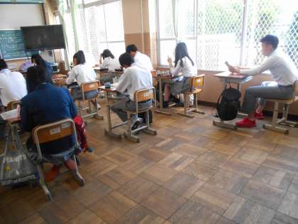 静かに読書をしている3年7組のようすです。