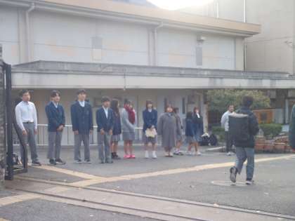 本日、早朝より「PTAあいさつ運動」を実施していただきました。この数日、全国的に冷え込む中、たくさんの保護者の方々から登校する生徒や小学校へ集団登校する児童と「あいさつ」を交わしていただき、生徒の登校風景を見ていただきました。