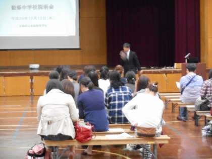 道徳公開授業後の14:15から体育館で進路保護者会を行いました。