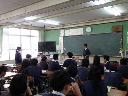 今回から新しい学級役員となりました。新本部役員の2年生を中心に頑張って,新しい勧修中学校を作っていってほしいです。