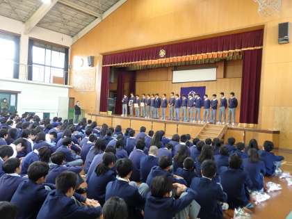 準優勝をしたというキャプテンの報告、そして、校長のねぎらいのことばと続き、全校の生徒の拍手で終わりました。