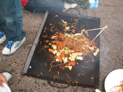 天気が心配でしたが、生徒全員の気持ちが通じて、あまり雨にもぬれず、各クラス班の仲間で鉄板をかこみました。