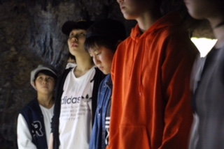 現地ガイドさんの話泣きながらを聞いている生徒もいました。