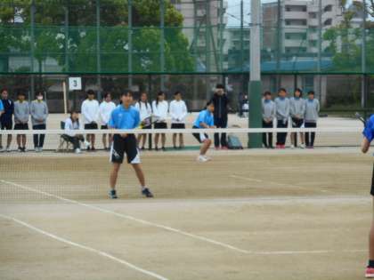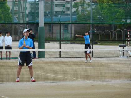 4月28日に,西院コートで個人戦が行われました。1ペアだけが2回戦まで進出しました。翌29日に,四条中で団体戦が行われました。対戦相手は朱雀中でした。2ペアがファイナルゲームまで試合をしましたが,結果,0−3で敗退となりました。