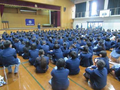 体育委員会では,自己紹介をしたあと,年間活動予定について話しました。またボール貸し出しについて話し,最後に学年代表,副代表の選出をして終わりました。
