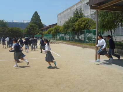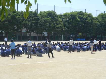 避難の放送からわずか3分43秒で避難・グラウンド集合が終わり,昨年度より1分20秒も短縮されました。素早い避難でした。