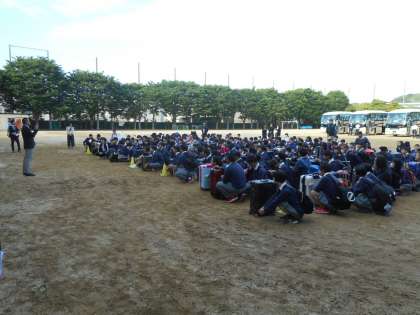 今日から3年生は修学旅行です。沖縄に向かって出発します。