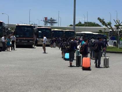 空港のターンテーブルから荷物を取り出し,いよいよ移動開始です。