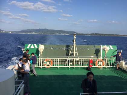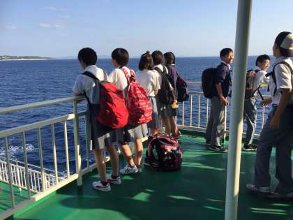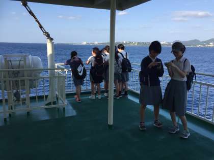 「デッキでは、爽やかな風のなか、風と戯れ、写真を撮り