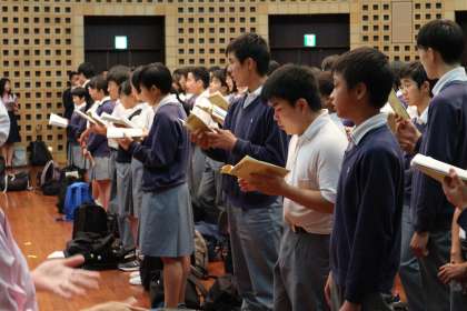 海の青さと、空の青さ、沖縄に来てワクワクした…という生徒の言葉