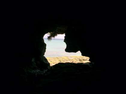 「ニャティア洞で力石を見ています」