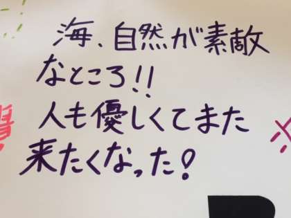「ホールに入る前,横断幕にそれぞれの思いを綴る…。