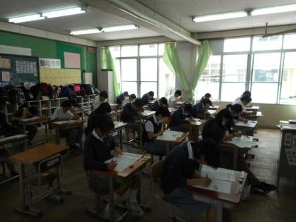 今日は,1年は数学・保体・英語,2年は英語・数学・美術,3年は保体・英語・数学が実施されました。