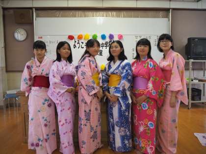 講師の先生から浴衣の歴史,着方を教えていただきました。帯の結び方に苦戦しましたが,浴衣を着ることができました。記念撮影の後,浴衣をたたみました。