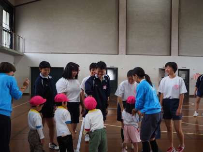 初めは緊張していた中学生も園児さんと遊ぶうちに楽しく話ができるようになりました。