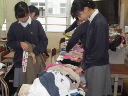 美化委員会では,まず前期の振り返りをし,次に服のチカラプロジェクトで集まった服を畳み,最後に常時活動(黒板クリーナーの点検と水やり)を行いました。