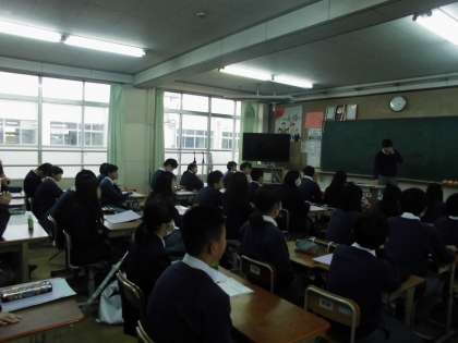 あいさつ運動や支部交流会について話しました。次に月間目標を書き,勧修中学校での思い出を募集しました。最後に先生から一言いただきました。