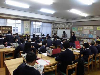 今までの振り返りを,抜き打ちベル着点検の結果を話しました。次にポスター作りをし,先生から一言いただきました。