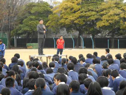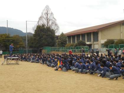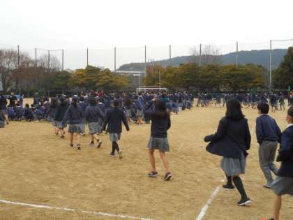 前回の火災での訓練では,グランドに集合し点呼の報告終了まで3分43秒でしたが,今回は3分26秒でした。素早く避難ができました。