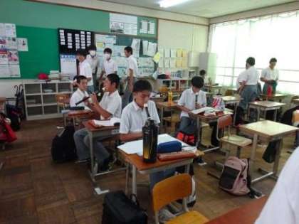 教室を覗くと,午後の音楽の授業でリコーダーのテストがあるようで,男女仲良く自主練習。