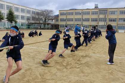 綱引き前に、円陣を組んで士気を高めるクラスもあったり・・・
