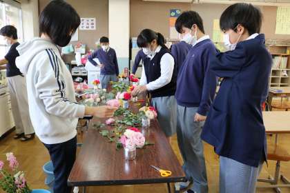 昨日の入学式の壇上で式を華やかに彩ってくれた花。