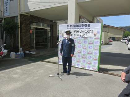 「ゾーン30」は条件にあったところに無条件に設定されるわけではなく,地域自治連合会をはじめとする,勧修中学校の生徒の安全な学校生活・登下校を願う方々の警察・行政への粘り強い働きかけにより実現したものということです。勧修中生の学校生活は,保護者だけでなく地域や地域各種団体の願いのもと築かれていることに思いをはせ,感謝の気持ちを持つだけでなく,地域を構成する一員としての自覚のなか,日々過ごしてほしいものです。そしていつの日か,居住する地域を守り育てる大人に成長し地域をけん引する人となることを期待するスタート式でした。