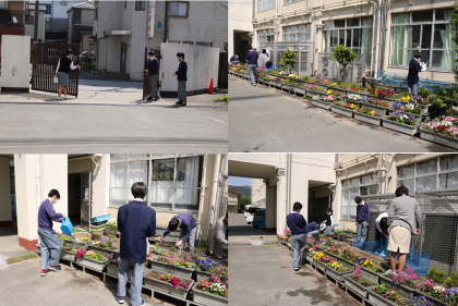 生活の時間で先日植え付けた夏野菜と花のお世話をしていました。