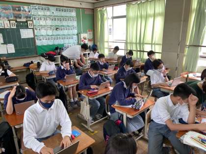 みんなタブレットに夢中なクラスがありました。