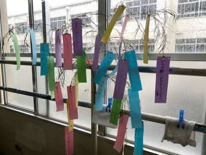 教室にも笹の葉飾りがチラチラと…