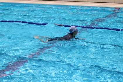 クロール、平泳ぎを25mずつ何度も泳いでいました。