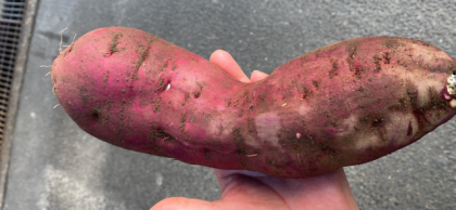 やっとスッキリ晴れた本日、1組農園のサツマイモ収穫が行われました。