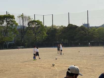 早速、青空の下、部活動をしていました。