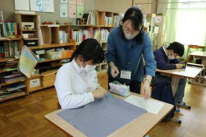 1組では家庭科の授業が行われていました。