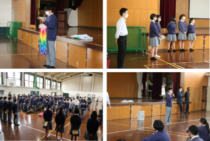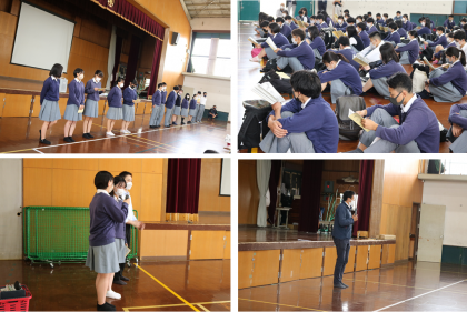 有志で作ってくれた修学旅行スローガンの横断幕披露