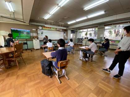 1組をのぞいてみると、みんなノリノリで英語の授業をしていました。