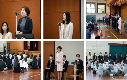 春の日差しの中,令和4年度離任式が行われました。