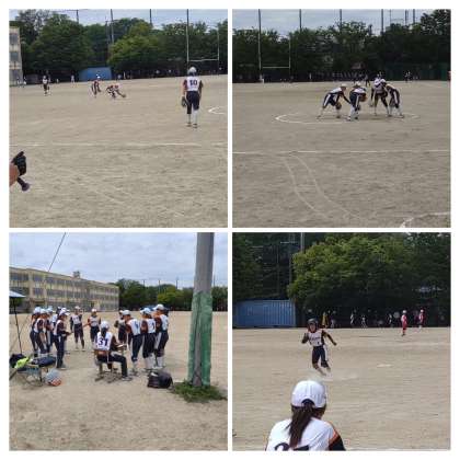 ソフトボール部の初戦は西京極中学校で行われました。音羽中学校と対戦し、11-1で勝利しました。