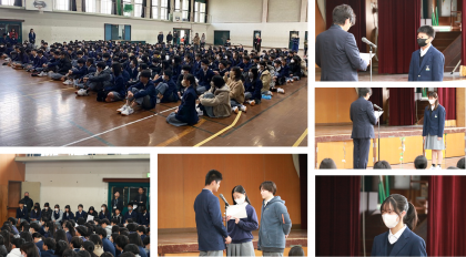 1月1日の能登半島地震,世界を見渡すと戦争などある中での3学期のスタートでしたが,「互いを認め合い,すすんで学び続ける」に照らし