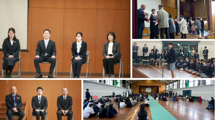 校長先生からの紹介の後,教職員の方々一人一人からメッセージが述べられ,生徒会代表生徒がお別れの言葉で送りました。