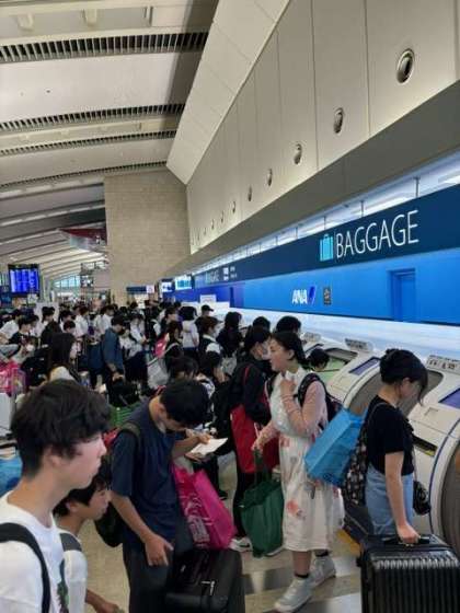 手荷物を預ける作業を一人一人で。
