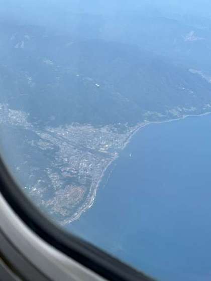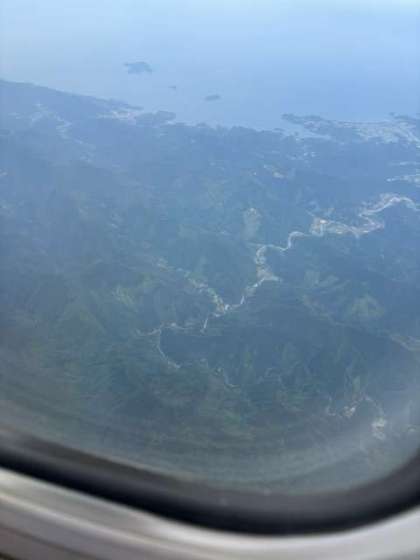 ※四国上空。窓際の生徒たちは食い入るように見ていました。
