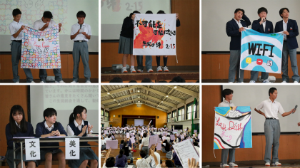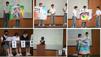その後,各クラスの学級目標・学級旗の披露,学年目標の披露などが,パフォーマンスなども交えて楽しく行われました。