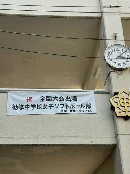 先日の女子ソフトボール部の全国大会出場を受けて、PTA様より、横断幕を寄贈いただきました。ありがとうございました。