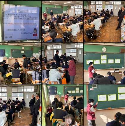 1月14日に引き続き、本日は3年生社会科(公民)で社会保険労務士の方をお招きし、さまざまな働き方と社会保険について考える授業を行いました。
