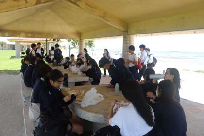 美しい海を見ながら昼食です