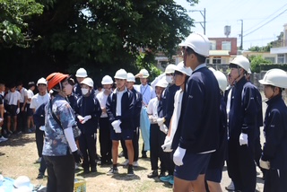 ガイドの方から沖縄戦について学びました。続いてガマに入ります