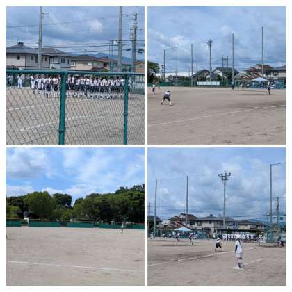 初戦は大阪の錦中学校と対戦しました。先制され、苦しい展開から追いつき、7回には3点をとられ、つきはなされるも、最終回の攻撃で3点差を逆転し、7-6でサヨナラ勝ちでした。