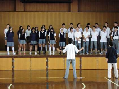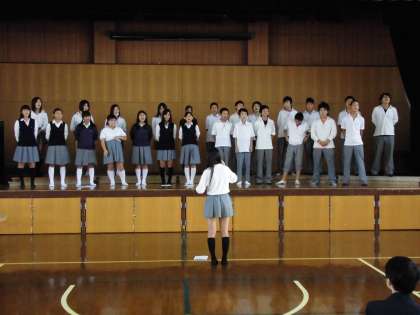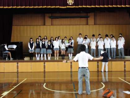 どのクラスも女子のパートは美しいハーモニーが聞こえていました。男子は声は出ていたのですが,うまく音程がとれていなかったようです。歌詞もまだ覚えられていないところもありました。男子と女子のハーモニーがうまく合わさって,すばらしい歌声になるよう,期待しています。…… 教室に帰って猛特訓をしているクラスもありました。
