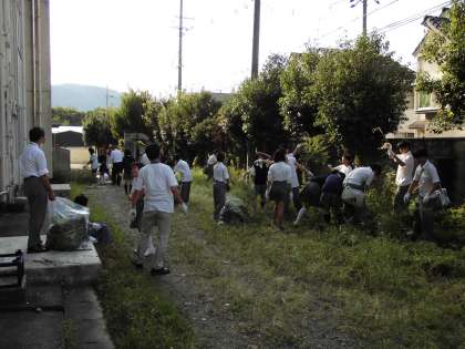 美化委員会の人たちが放課後に,校舎裏の雑草を掃除してくれました。